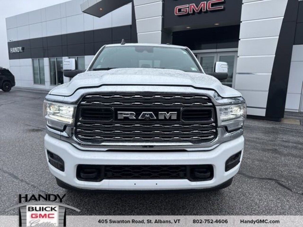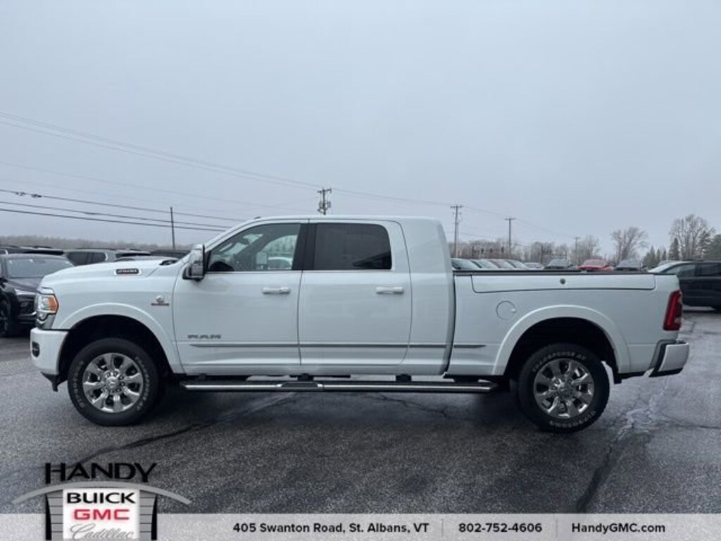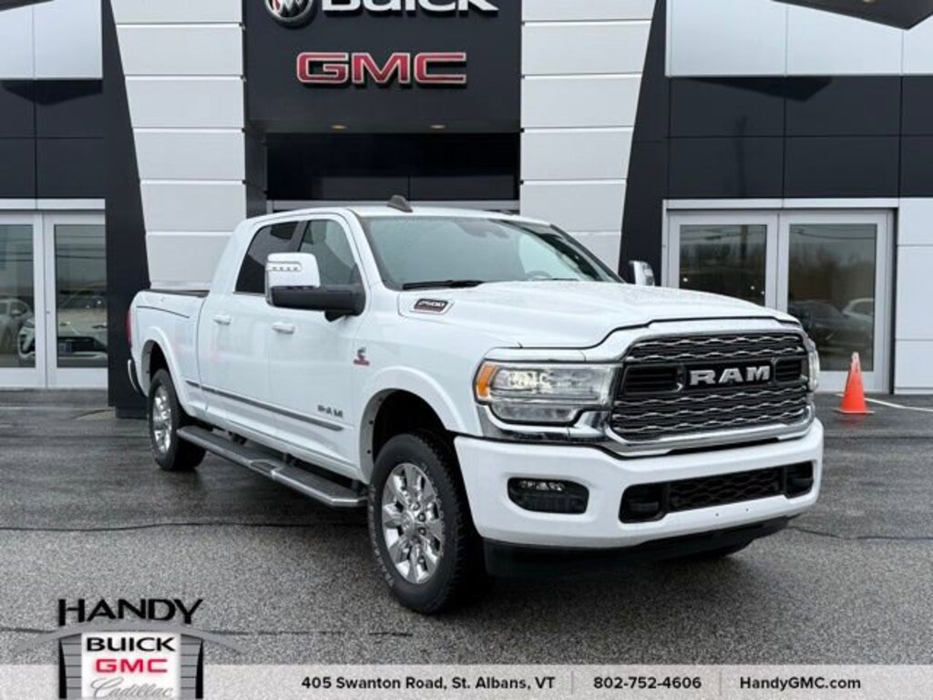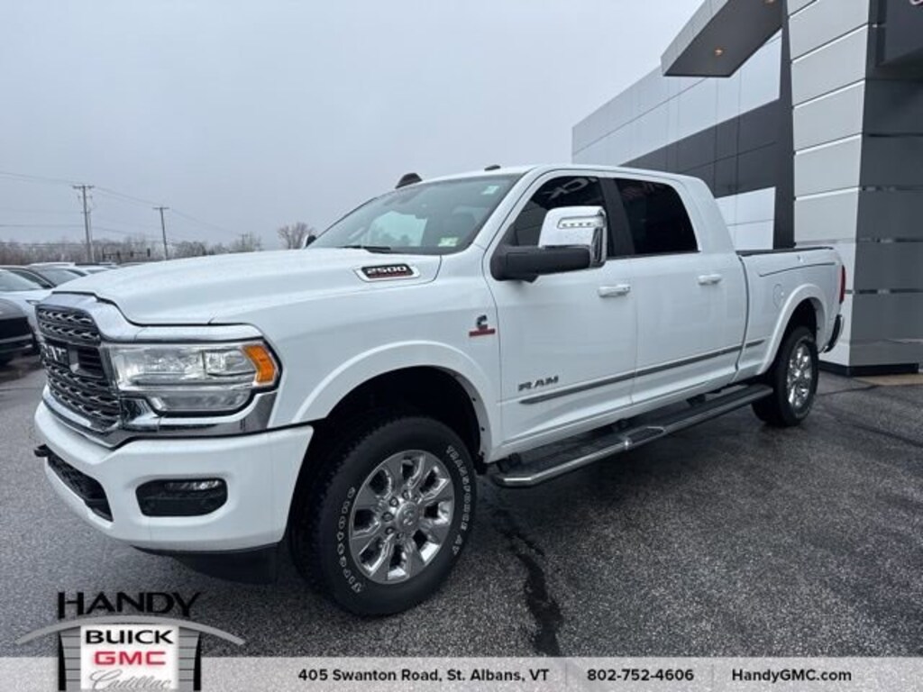 Recent Arrival!Priced below KBB Fair Purchase Price! Odometer is 2353 miles below market average!CARFAX One-Owner. Clean CARFAX.Local Owner, Recently traded! Super clean, 12 Touchscreen Display, 17 Speaker harman/kardon Premium Sound, 4 Adjustable Cargo Tie-Down Hooks, 4G LTE Wi-Fi Hot Spot, Adaptive Cruise Control w/Stop, Adaptive Steering System, Alexa Built-In, Apple CarPlay, Center Hub, Center Stop Lamp w/Cargo View Camera, Connected Travel & Traffic Services, Connectivity - US/Canada, Digital Rearview Mirror, Disassociated Touchscreen Display, For Details, Visit DriveUconnect.com, For More Info, Call 800-643-2112, Full Speed Forward Collision Warning Plus, Global Telematics Box Module (TBM), Google Android Auto, GPS Antenna Input, GPS Navigation, HD Radio, Integrated Voice Command w/Bluetooth, Lane Keep Assist, LED Bed Lighting, Limited Level 1 Equipment Group, MOPAR Spray In Bedliner, Navigation System, Off-Road Information Pages, Power Deployable Running Boards, Protection Group, Quick Order Package 2HM Limited, Radio: Uconnect 5 Nav w/12.0 Display, RamBox Cargo Management System, Ramcharger Wireless Charging Pad, Selectable Tire Fill Alert, SiriusXM Radio Service, SiriusXM w/360L, Surround View Camera System, Trailer Reverse Guidance, Trailer Tow Pages, Truck Bed Cargo Divider, Vendor Painted Cargo Box, Vendor Painted Cargo Box Tracking, Wheels: 20 x 8.0 Satin Carbon w/Chrome Inserts.Qualifies for the remainder of factory warranty if applicable. *Included w/ purchase: 30 day Limited Comprehensive Warranty w/ a $100 deductible along w/ a 6 month/6,000 mile Limited Powertrain Warranty w/ a $250 deductible. *Free Vermont State Inspection as long as you own. *One free lube oil filter change. *All offers valid at Handy Buick GMC Cadillac only.2024 Ram 2500 Limited Bright White Clearcoat Limited 4D Mega Cab 4WD 6-Speed Automatic Cummins 6.7L I6 TurbodieselContact Handy Buick GMC for details on this vehicle today! Reach out to us at 802-524-4615, speak with one of our customer friendly purchase and leasing consultants to schedule the test drive of your next NEW or PRE-OWNED vehicle!
